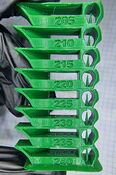 Um einen Flussrate-Testdruck zu starten, wird im Orca-Slicer in der Kopfzeile, der Reiter „Calibration“, dann „Flow-rate“ und zuletzt „Pass 2“ gewählt. Es erscheinen 10 Plättchen beschriftet von 0 bis -9. Jedes dieser Plättchen wird mit einer immer weiter verringerten Flussrate gedruckt. So kann nach dem Druck das beste Ergebnis gewählt werden. Zu beachten ist, dass für den Flowrate-Test noch die Flussrate in der Filamenteinstellung verändert werden muss. Das Plättchen 0 soll mit einem 10 Messpunkte höheren Wert als dem Startwert von 0,95 gedruckt werden. Die in den Filamenteinstellungen zu verwendende Flussrate errechnet sich somit zu: